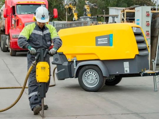 Компрессор имеет небольшой вес - всего 750 кг, что позволяет с лёгкостью транспортировать его по стройплощадке.